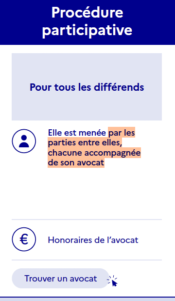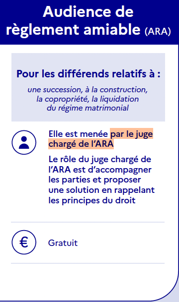 On donne en l’état le dernier tableau des différents modes règlement amiable lorsque la procédure est déjà engagée., fiches élaborées par justice.fr